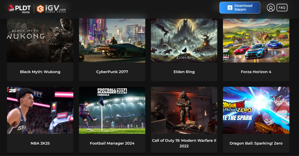 For new subscribers: Avail of PLDT Home Fiber Plan 1299 and up, which includes access to the IGV Game Pass — bringing a wide library of PC games directly into your home.