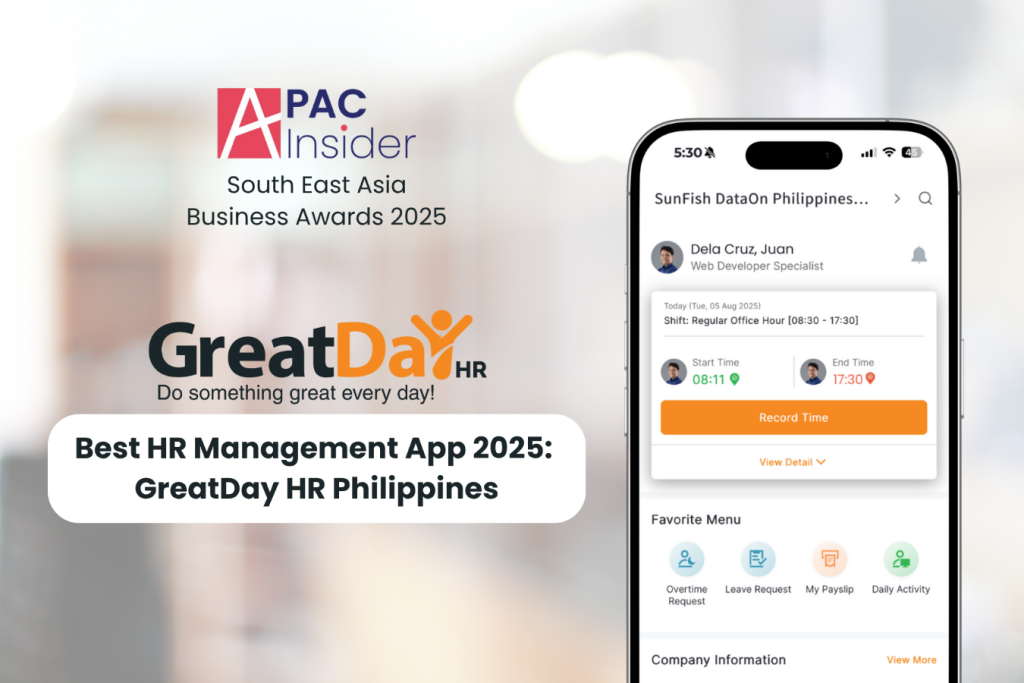 GreatDay HR Philippines has been recognized as the Best HR Management App in the 2025 South East Asia Business Awards by APAC Insider, reaffirming its commitment to providing innovative, practical HR solutions tailored to Philippine businesses.