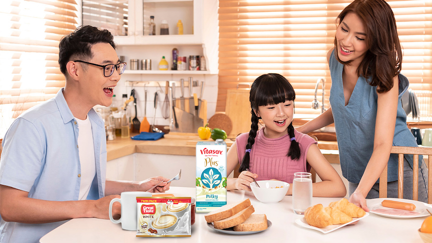 Make mornings with your family more delightful by adding delicious beverages, like Great Taste White Coffee Mix and Vitasoy Plus Milky, to your breakfast feast.