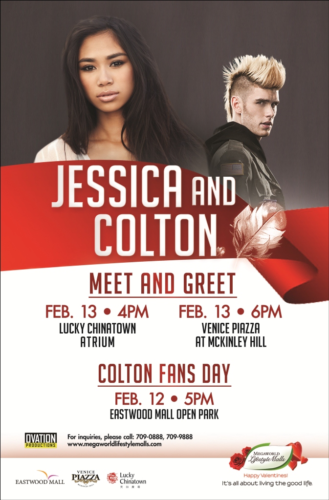 And for those who want to get up close and personal with these idols, purchase a CD of Colton or Jessica at the event venue and like us on Twitter or FB to get your photo taken with Colton on February 12 and with Jessica & Colton on February 13 at Lucky Chinatown and Venice Piazza at Mckinley Hill. Just bring a colored printout of our FB / Twitter page as proof that you are a fan and present it at the venue. Hurry – only the first 25 will be able to avail of this special photo opportunity!