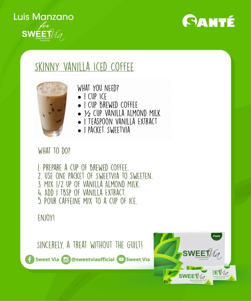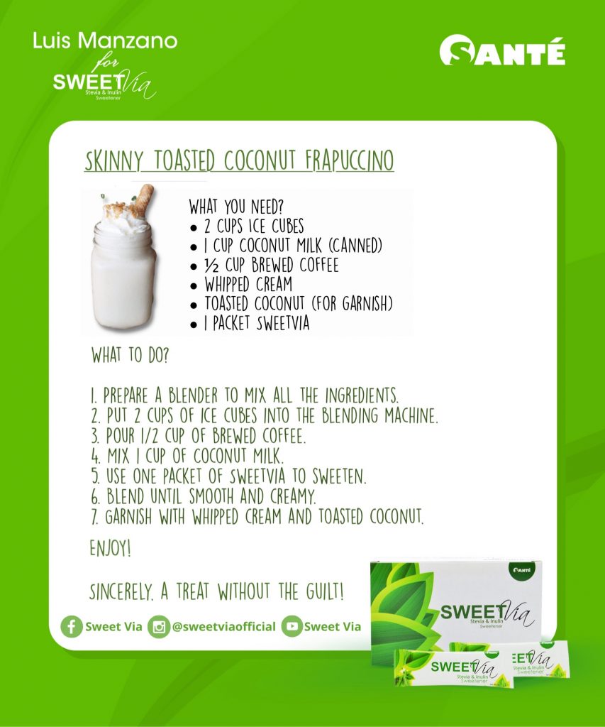 Luis also expresses how grateful he is to partner with Sweet Via, “It’s great to partner with a brand like Sweet Via. This is the best alternative every time I want to eat or drink something sweet. Another plus with Sweet Via is the prebiotics that it contains which takes care of my tummy. Sweet Via is so versatile because it could be used not just in drinks and desserts but in every single food recipe imaginable.”