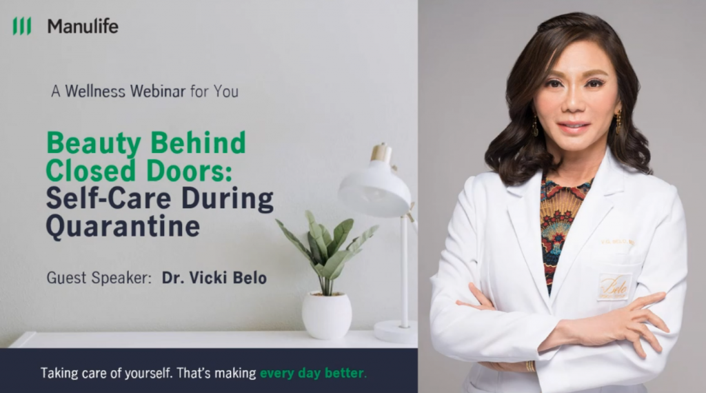 Manulife Philippines recently held a free wellness webinar led by the one of the country’s leading dermatologist Dr. Vicki Belo, President and Medical Director of the Belo Medical Group, who shared some self-care advice with Filipinos, as they face the uncertainties brought about by COVID-19.