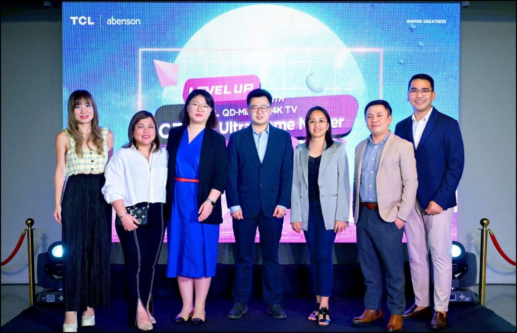 (L-R) Apple Ma, Abenson Marketing Manager; Au Mendoza, Abenson Vice President for Operations; Shae Yu Xiaoling, TCL PH Marketing Head; Charlie Wang, TCL PH Deputy Director of TV Category; Cyd Montebon, TCL PH Sales Director for TV Category; Jay Guanzon, TCL PH Director of Whitelines and Business Development; and Joseph Cernitchez, TCL PH Brand Manager
