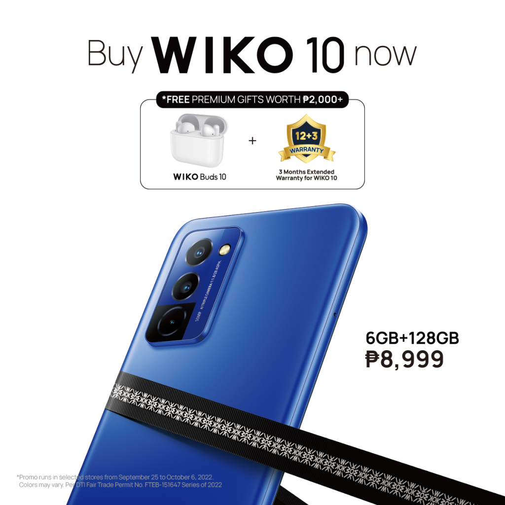 WIKO 10 will be available from September 25, 2022 for P8,990 at Shopee, Lazada, and authorized WIKO stores and kiosks.