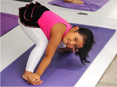 Sharing the love. A young girl enjoys doing the standing separate-leg stretching pose in a Manduka yoga mat courtesy of Certified Calm. Dandayamana-Bibhaktapada-Paschimotthanasana or Standing Separate Leg Stretching Pose is a Bikram Yoga pose designed to improve flexibility using one’s strength