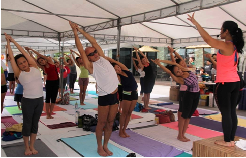 Bikram yoga is composed of 26 postures and two breathing exercises performed inside a heated room. “This time though, we did it outside and that made it even more special,” added Diaz.
